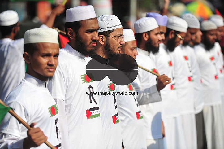 • Image Description: Sylhet, Bangladesh. 20th October 2023. The Bangladesh National Imam Somiti Sylhet Metropolitan backed by a large number of protesters took to the streets in Sylhet to show their support for Palestine. The supporters chanted slogans against the brutal and