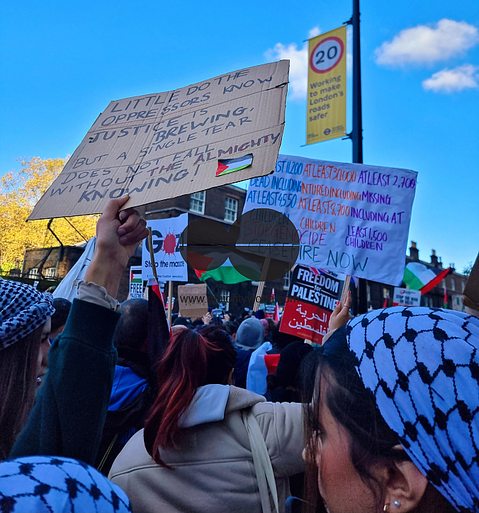 Over 300,000 Pro-Palestinians marched from Hyde Park to the USA embassy in London, on the afternoon of 11th November 2023, protesting against the war and urging an immediate ceasefire. United Kingdom.Â
