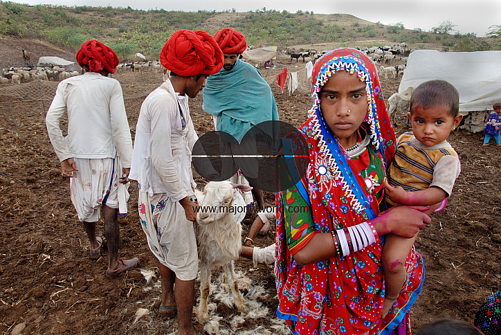 The Banjara women in their ancient mode of dress and jewellery is perhaps the most colourful and elaborate of any tribal group in India. They are the typical nomads who wonder from one place to another thus leading a life in their own terms and condition. Mandu, Madhya Pradesh, India.
