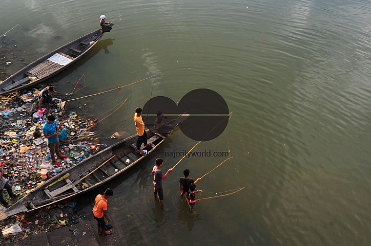 • Description: Children and people are catching fish. At the beginning of winter, the water in the river canals of Bangladesh has started to decrease, so the amateur fishermen of different ages are sitting with Fishing rods in the hope of catching fish at Katalpur bazar on the Sylhet Fenchuganj highway. Sylhet, Bangladesh.
