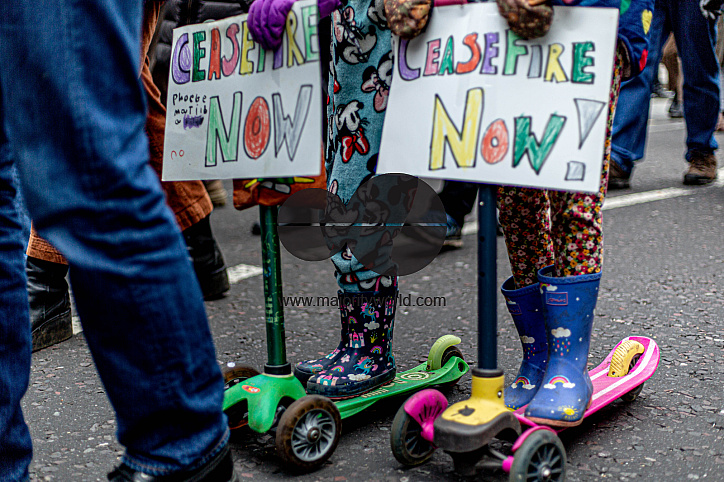 • Image Description: A global day of protests drew thousands of people including Children, who made their way through central London for a pro-Palestinian march, part of a global day of action against the longest and deadliest war between Israel and Palestinians in 75 years.