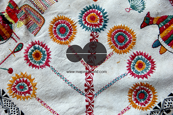 • Image Description: Nakshi kantha, a type of embroidered quilt, is a centuries-old Bengali art tradition of the Bengal region, notable in Bangladesh and Indian states of West Bengal, Tripura and part of Assam. The basic material used is thread and old cloth. The colourful pa