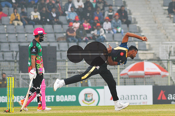 • Image Description: Sylhet, Bangladesh. 02nd February 2024. Bangladesh paceman SHORIFUL ISLAM in action for Durdanto Dhaka against Sylhet Strikers in the Bangladesh Premier League at the Sylhet International Stadium.