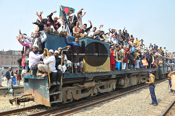 • Image Description: Thousands of Muslim devotees are returning home on an overcrowded train after attending the final prayer of Bishwa Ijtema 2nd phase, which is considered the world's second-largest Muslim gathering after Hajj in Mecca. Tongi, the outskirts of Dhaka. Bangla