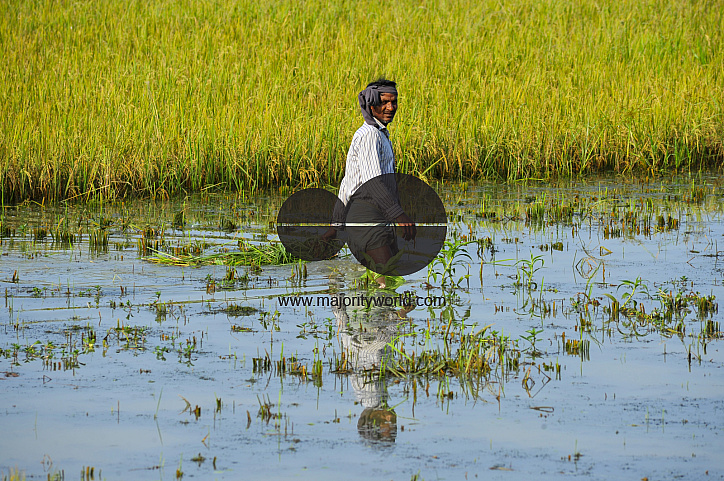 • Description: Farmers harvesting Boro paddy partially submerged in flooded land. Frequent rains in Sylhet and water flowing down from the Meghalaya hills have inundated the paddy fields in Kanaighat, Goainghat, and Jaintapur upazilas bordering Sylhet. Sylhet, Bangladesh.