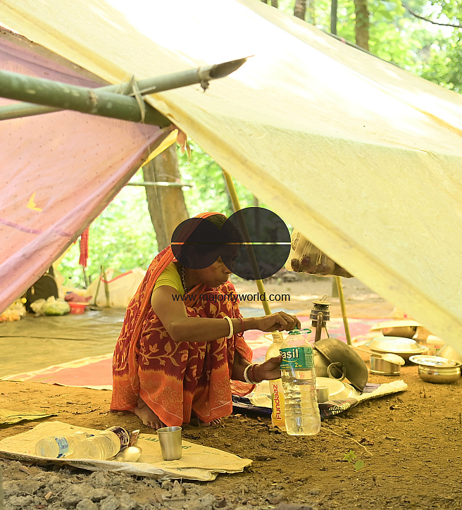• Image Description: Makeshift tents at the Panisagar's reserve forest area. The people who live in these makeshift tents are from 30 to 40 landless families that relocated to this place to register their demand for getting a proper rehabilitation package. The families have l