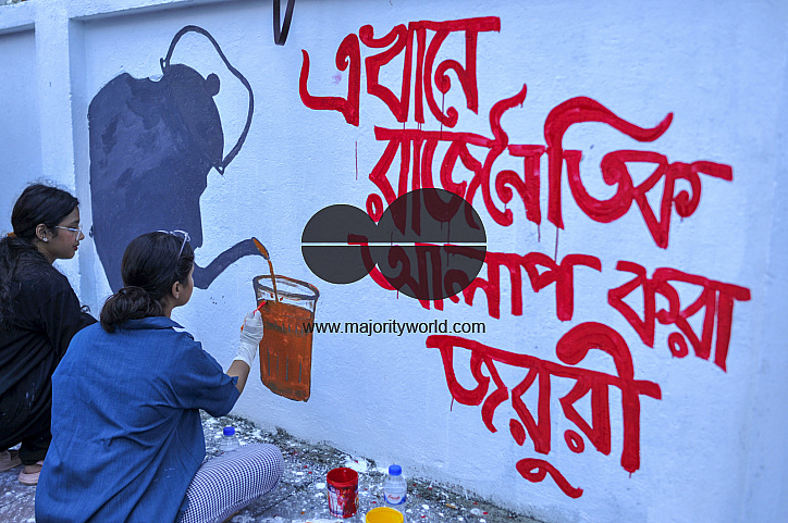 • Headline: Students paint over vandalised walls in Bangladesh