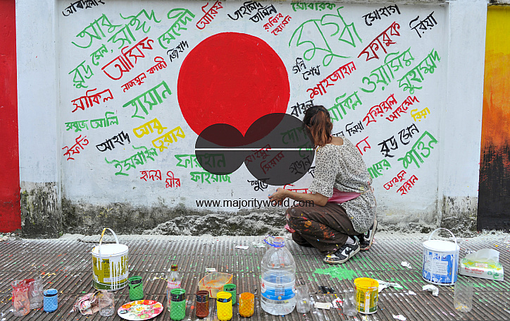 • Description: Sylhet, Bangladesh. 9th August 2024. Students of educational institutions paint over vandalised walls in Sylhet. From directing vehicles to repainting the urban landscape, the young students are transforming Sylhet city streets in impressive ways. They wrote powerful messages, rebel poetry, and artistic expressions to inspire change and elevate the spirit of the community.