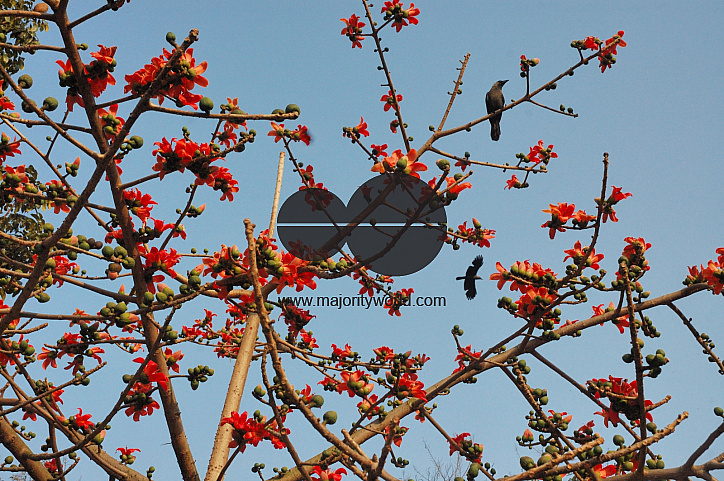 Silk Cotton flowers, known locally as 'shimul'. The flower blooms during spring in Bangladesh. Dhaka, Bangladesh. February 21, 2007.