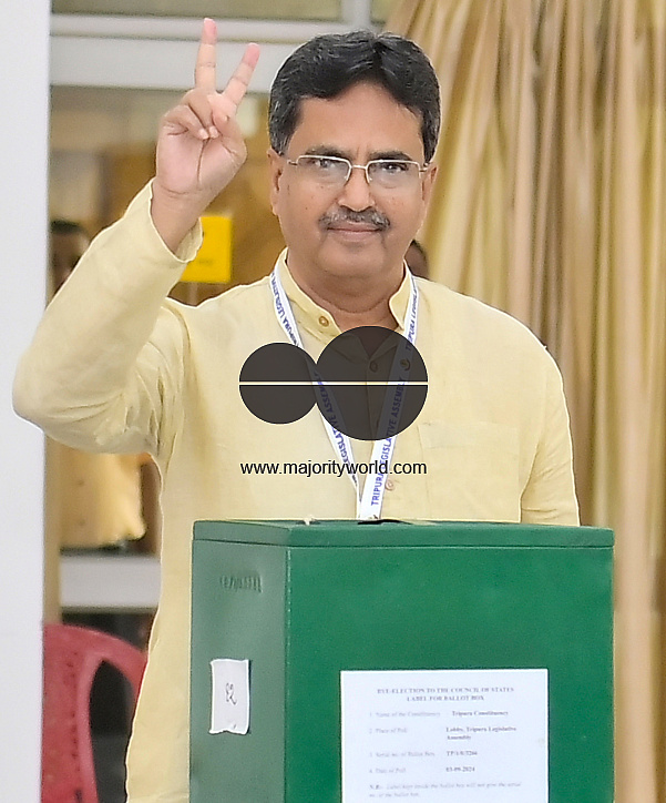 • Image Description: CM of Tripura, Dr. Prof Manik Saha at the by-election to the Council of States (Rajya Sabha) at the Secretariat in Agartala. Tripura, India.