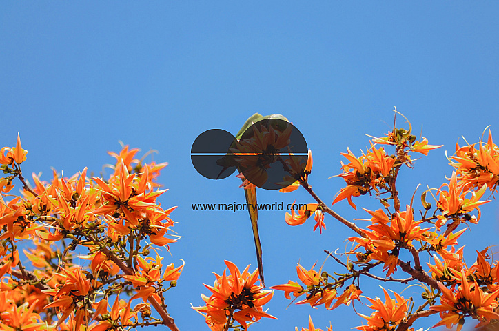 • Image Description: The season of spring has arrived once again. Nature in the city is adorned with a touch of vibrant colours. The number of birds has increased. A green parrot is seen on the colourful cotton tree. Chittagong, Bangladesh.