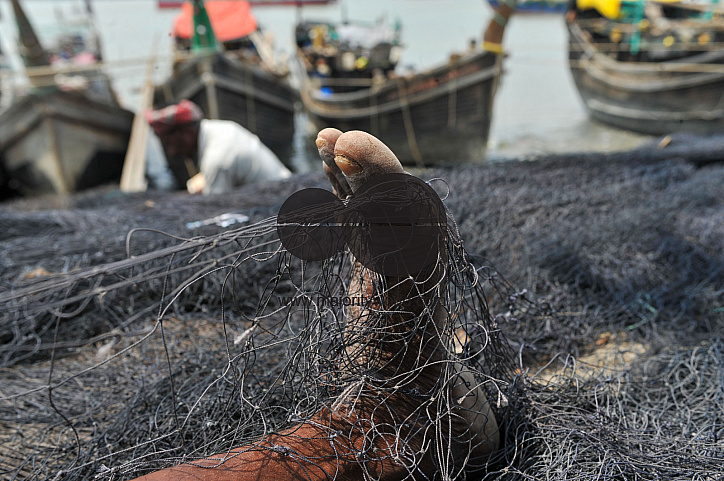 • Description: Along the banks of the Karnaphuli River at Fishery Ghat, fishermen are busy repairing their nets during the 58-day fishing ban imposed by the government in the Bay of Bengal. However, many of them claim that the government-promised ration support has not reached them, leaving them struggling to make ends meet. Bangladesh.
