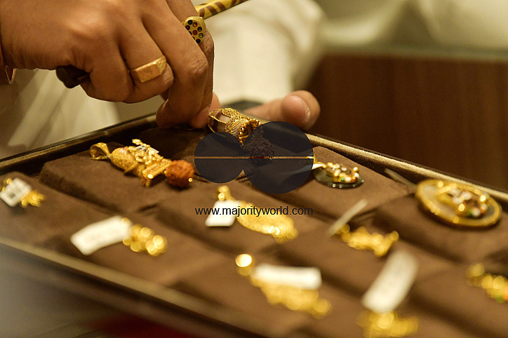 A salesman arranges gold jewellery ahead of 'Akshaya Tritiya,' an auspicious day in the Hindu calendar for buying valuables, at Shyam Sundar Co Jewellers, one of the leading jewellery showrooms in Agartala. Tripura, India.