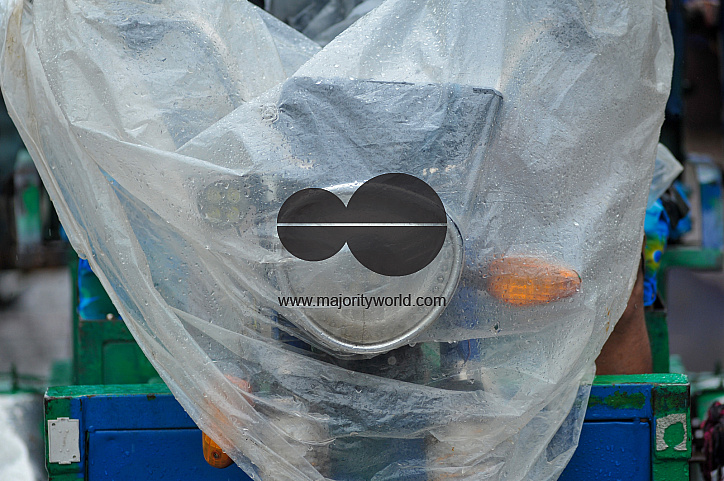 • Description: A three-wheeled battery rickshaw driver is covered with plastic sheets in the rain. June marks the start of the monsoon season in Bangladesh, characterized by high humidity, frequent thunderstorms, and substantial rainfall.