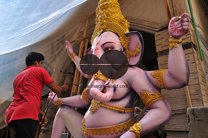 An artisan carefully works on a clay idol of Lord Ganesh in preparation for the Ganesh Chaturthi Puja 2025 celebrations. Chattogram, Bangladesh.