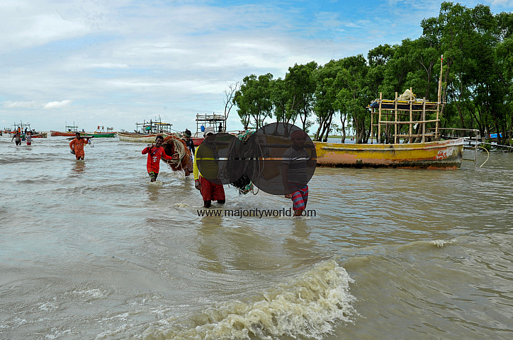 • Description: Fishermen return from the Bay of Bengal with Hilsa Fish buckets and other traditional fishing gear. Hilsa is a national delicacy that plays a vital role in the country's economy and supports the livelihoods of coastal communities. Chattogram, Bangladesh.