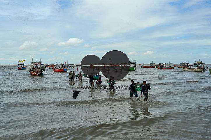 • Image Description: Fishermen return from the Bay of Bengal with Hilsa Fish buckets and other traditional fishing gear. Hilsa is a national delicacy that plays a vital role in the country's economy and supports the livelihoods of coastal communities. Chattogram, Bangladesh.