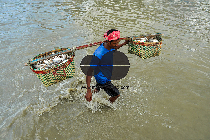 • Description: Fishermen return from the Bay of Bengal with Hilsa Fish buckets and other traditional fishing gear. Hilsa is a national delicacy that plays a vital role in the country's economy and supports the livelihoods of coastal communities. Chattogram, Bangladesh.