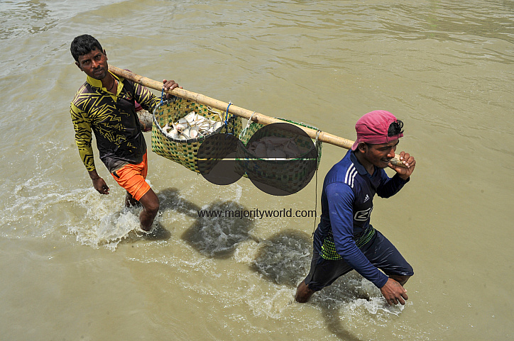 • Image Description: Fishermen return from the Bay of Bengal with Hilsa Fish buckets and other traditional fishing gear. Hilsa is a national delicacy that plays a vital role in the country's economy and supports the livelihoods of coastal communities. Chattogram, Bangladesh.