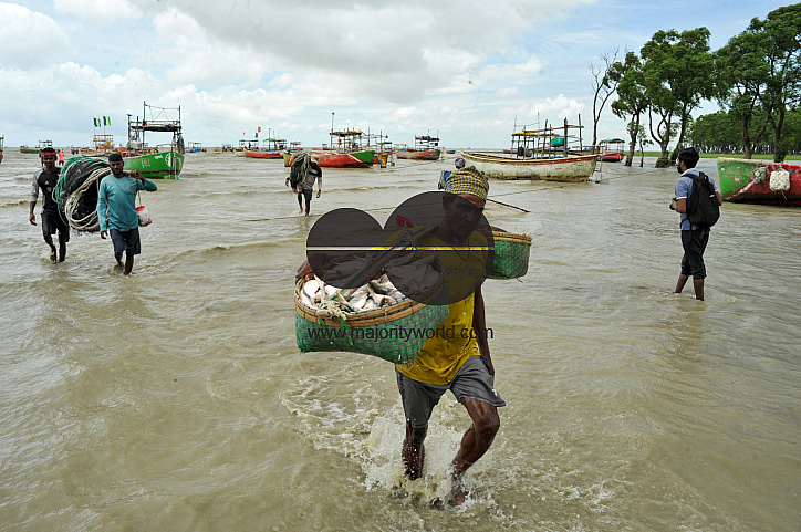 • Description: Fishermen return from the Bay of Bengal with Hilsa Fish buckets and other traditional fishing gear. Hilsa is a national delicacy that plays a vital role in the country's economy and supports the livelihoods of coastal communities. Chattogram, Bangladesh.