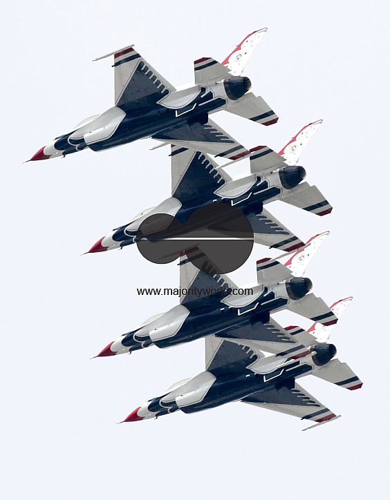• Image Description: The U.S Air Force Thunderbirds fly in formation on the second day of the Chicago Air and Water Show as seen here in the skies on the North side of Chicago. This is an annual air show held along the shores of Lake Michigan since 1959 and is the largest fre
