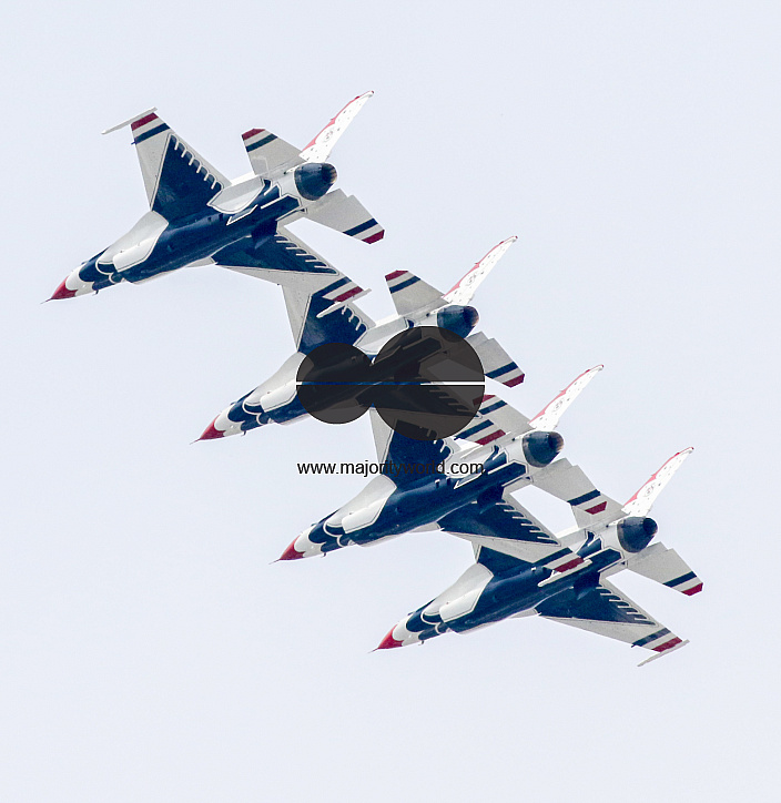 The U.S Air Force Thunderbirds fly in formation on the second day of the Chicago Air and Water Show as seen here in the skies on the North side of Chicago. This is an annual air show held along the shores of Lake Michigan since 1959 and is the largest fre