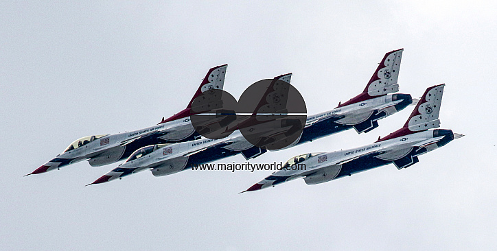 • Description: The U.S Air Force Thunderbirds fly in formation on the second day of the Chicago Air and Water Show as seen here in the skies on the North side of Chicago. This is an annual air show held along the shores of Lake Michigan since 1959 and is the largest free air show of its kind. Chicago, USA.