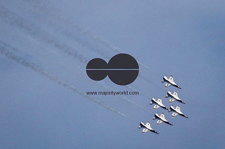 • Image Description: The U.S Air Force Thunderbirds fly in formation on the second day of the Chicago Air and Water Show as seen here in the skies on the North side of Chicago. This is an annual air show held along the shores of Lake Michigan since 1959 and is the largest fre
