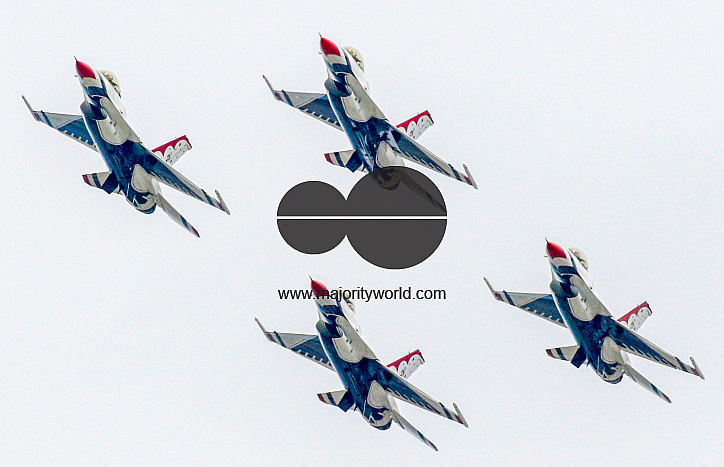 • Image Description: The U.S Air Force Thunderbirds fly in formation on the second day of the Chicago Air and Water Show as seen here in the skies on the North side of Chicago. This is an annual air show held along the shores of Lake Michigan since 1959 and is the largest fre