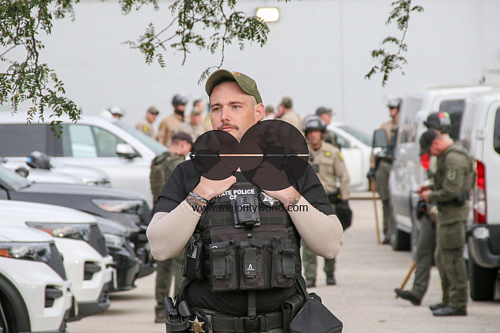 Sherrif’s police and Illinois State police are on hand to keep protesters under control and ensure their safety outside the ICE Detention Center on 25th Street and Harvard in Broadview, IL. The Broadview Mayor set hours of protest between 9 AM and 6PM, an