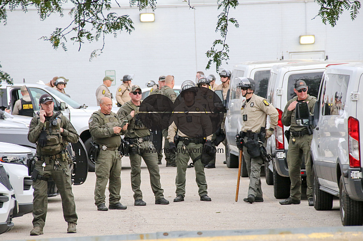 Sherrif’s police and Illinois State police are on hand to keep protesters under control and ensure their safety outside the ICE Detention Center on 25th Street and Harvard in Broadview, IL. The Broadview Mayor set hours of protest between 9 AM and 6PM, an