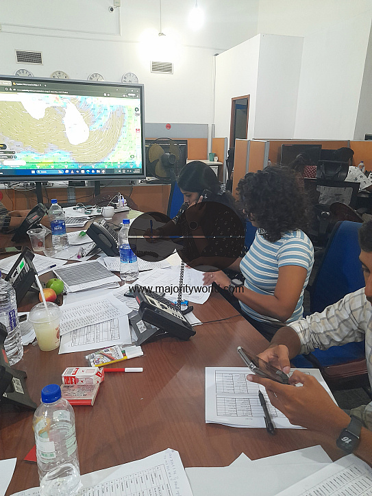 Volunteers at work at the disaster management center. A state of emergency was announced, in the aftermath of Cyclone Ditwah. The death toll from devastating floods and mudslides has killed 330 people. More than 400 are missing, and some 20,000 homes have