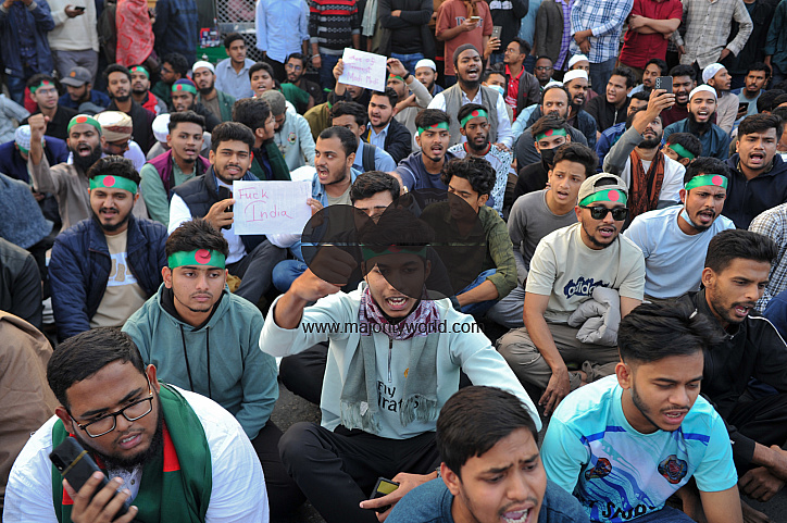 • Image Description: 29th December 2025. Chattogram, Bangladesh. Inqilab Mancha staged a sit-in demonstration in Chattogram, demanding justice for the murder of Shaheed Osman Hadi, a pioneer of the Bangladesh–India anti-hegemony movement.