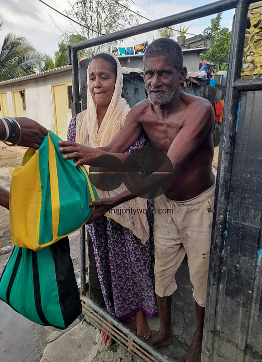 People helping the affected homes with dry rations. This is one of the worst affected areas in Colombo in the aftermath of Cyclone Ditwah and the floods. The death toll from devastating floods and mudslides has killed more than 600 people. More than 200 a