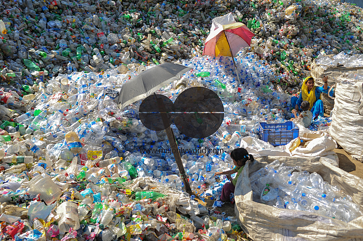 • Image Description: A woman sorts plastic bottles from a mountain of discarded waste at a recycling facility in Chattogram. The materials are processed and exported to countries including Turkey, Dubai, and the United States—highlighting both the massive environmental burden