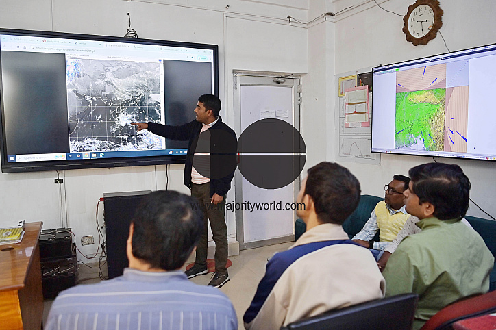• Description: Mr. Partha Roy, the Director of Metrological Section (IMD), discussing the cold wave and winter forecast with subordinates and officials at the Weather Forecast Office in Agartala. Tripura, India.