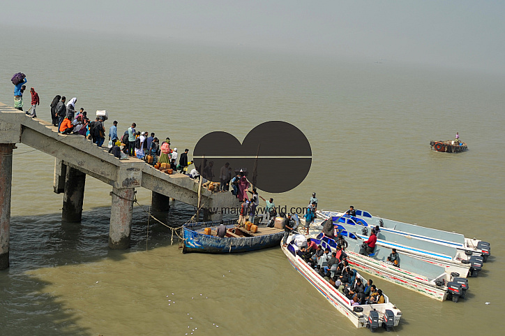 • Description: Locals board a speedboat in winter, bound for Sandwip Island via the Boro Kumira–Sandwip route in Sitakunda, crossing the Bay of Bengal through the Sandwip Channel, which separates the island from the Chattogram mainland. Chattogram, Bangladesh.