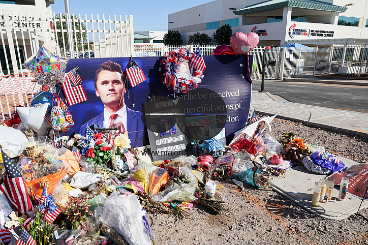 Supporters leave tributes for Charlie Kirk at Turning Point USA Headquarters in Phoenix, Arizona USA