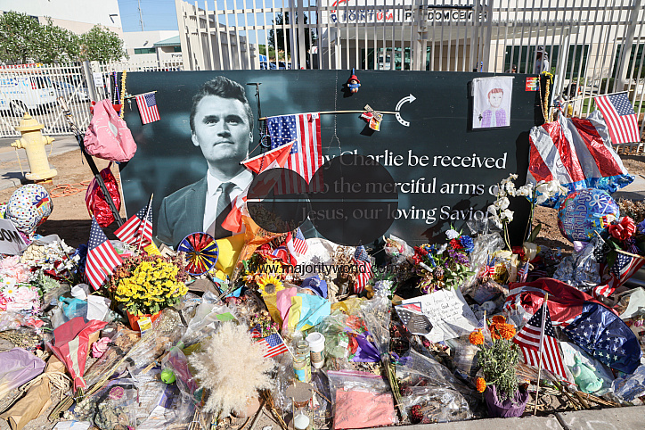 Supporters leave tributes for Charlie Kirk at Turning Point USA Headquarters in Phoenix, Arizona USA