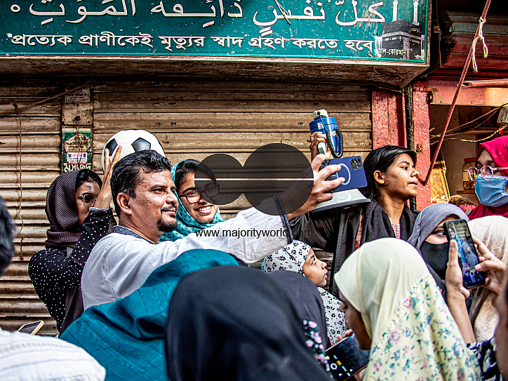 • Description: Dhaka, Bangladesh. 10th February 2026. Dr Tasnim Jara, an independent parliamentary candidate, assigned the football symbol in the 2026 Bangladesh Parliamentary election, walks around Dhaka 9 - in the area around Mugda Mosque. Her organic campaign relies on people to people and word of mouth campaigning, with much support from the grassroots. She stands with a clear people-centred programme and for transparency and accountability.