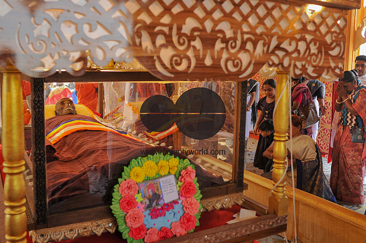 • Image Description: Buddhists pay their last respects during the national funeral ceremony of His Eminence Dr. Gyanashree Mahathero (100), the 13th Sangharaja and highest religious leader of Bangladesh’s Buddhist community, at West Binajuri Crematorium. He was a recipient of