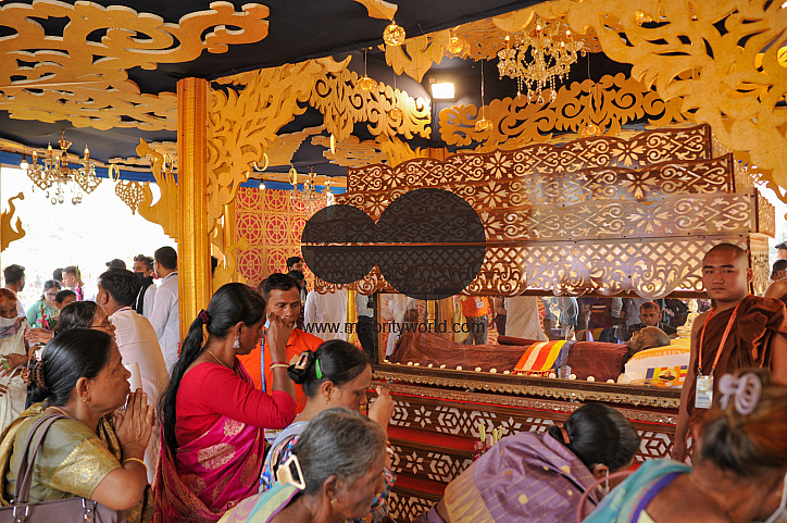 • Image Description: Buddhists pay their last respects during the national funeral ceremony of His Eminence Dr. Gyanashree Mahathero (100), the 13th Sangharaja and highest religious leader of Bangladesh’s Buddhist community, at West Binajuri Crematorium. He was a recipient of