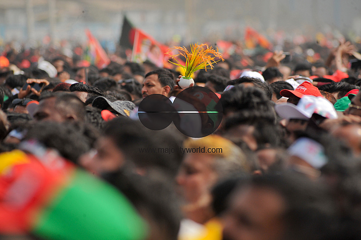 • Description: BNP’s Supporters at the meeting premises. Bangladesh Nationalist Party (BNP) Acting Chairman TARIQUE RAHMAN addresses supporters during the party’s national election campaign rally at the Polo Ground in Chattogram. Bangladesh.