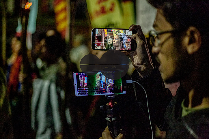 • Description: Dhaka, Bangladesh. 10th February 2026. Women’s and human rights groups took part in the ‘Shekol Bhangar Jatra’ (March to Break the Shackles). They protested and condemned what they described as misogynistic politics and hate speech by Jamaat-e-Islami leaders, accusing the party of openly degrading working women and promoting discrimination under the cover of religion. The protest was organised by the International Women’s Day Celebration Committee, and other women’s and human rights organisations, in front of the National Press Club in Dhaka.