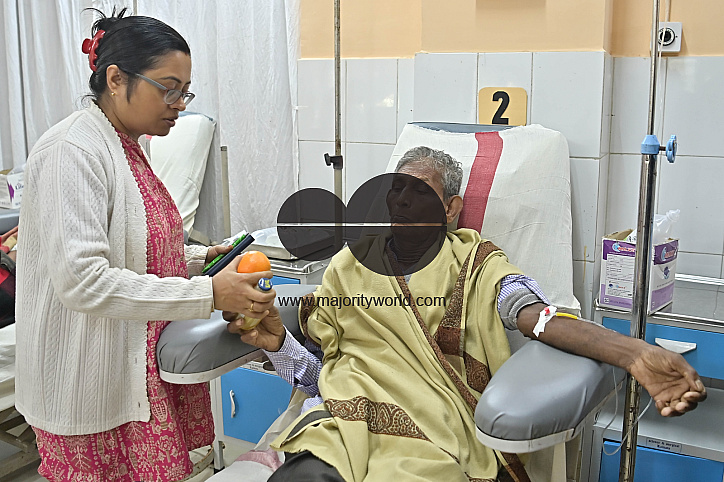Nurses and doctors are distributing fruits and juice to cancer patients at the Regional Cancer Institute on the occasion of World Cancer Day at a hospital in Agartala. Tripura, India.
