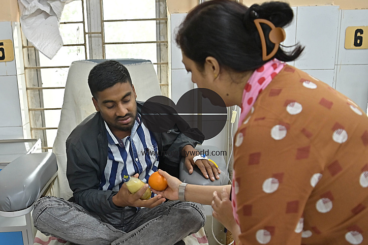 • Image Description: Nurses and doctors are distributing fruits and juice to cancer patients at the Regional Cancer Institute on the occasion of World Cancer Day at a hospital in Agartala. Tripura, India.