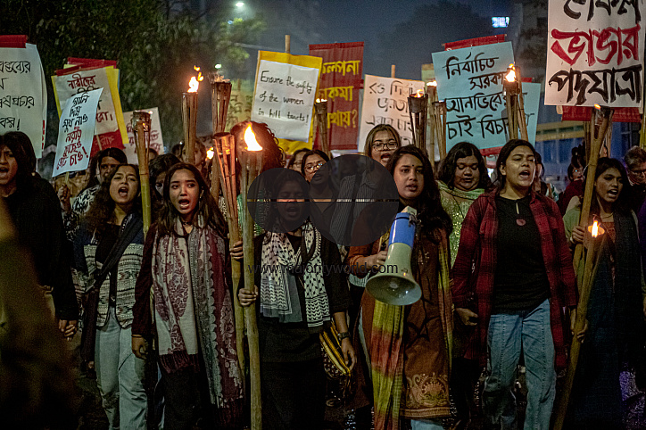 • Image Description: Dhaka, Bangladesh. 10th February 2026. Women’s and human rights groups took part in the ‘Shekol Bhangar Jatra’ (March to Break the Shackles). They protested and condemned what they described as misogynistic politics and hate speech by Jamaat-e-Islami lead