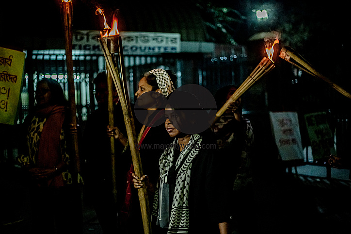 • Description: Dhaka, Bangladesh. 10th February 2026. Women’s and human rights groups took part in the ‘Shekol Bhangar Jatra’ (March to Break the Shackles). They protested and condemned what they described as misogynistic politics and hate speech by Jamaat-e-Islami leaders, accusing the party of openly degrading working women and promoting discrimination under the cover of religion. The protest was organised by the International Women’s Day Celebration Committee, and other women’s and human rights organisations, in front of the National Press Club in Dhaka.