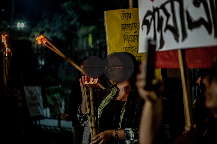 • Description: Dhaka, Bangladesh. 10th February 2026. Women’s and human rights groups took part in the ‘Shekol Bhangar Jatra’ (March to Break the Shackles). They protested and condemned what they described as misogynistic politics and hate speech by Jamaat-e-Islami leaders, accusing the party of openly degrading working women and promoting discrimination under the cover of religion. The protest was organised by the International Women’s Day Celebration Committee, and other women’s and human rights organisations, in front of the National Press Club in Dhaka.