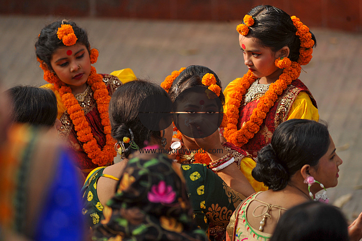 • Description: Young girls dressed in traditional Hill Tracts attire perform a cultural dance during the Bosonto (spring) celebration in Chattogram. The festival marks the arrival of spring with vibrant costumes, music, and traditional performances that reflect the rich ethnic heritage of the region. Chattogram, Bangladesh.